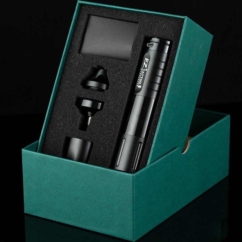 دستگاه تاتو پن شارژی EZ EvoTech محصولی از کمپانی بزرگ EZ جدیدترین فناوری ساخت با استفاده از تراشه های هوشمند موتور: موتور بدون برس روتور خارجی سفارشی EZ قابل استفاده هم به صورت شارژی هم با ترانس جنس: آلومینیوم هواپیما استروک : 3.5 میلی متر ولتاژ عملیاتی: 5.0 - 12 ولت DC RPM: 9000rpm ± 10% فرکانس : 60 - 150 هرتز برآمدگی سوزن: 0 - 4.5 میلی متر ابعاد ( Ø XL353) : 6.96 اونس (197 گرم) با پک پاور ظرفیت باتری: 1600 میلی آمپر ساعت زمان شارژ مجدد : 3.5 ساعت زمان شارژ کار: تقریبا 450 دقیقه